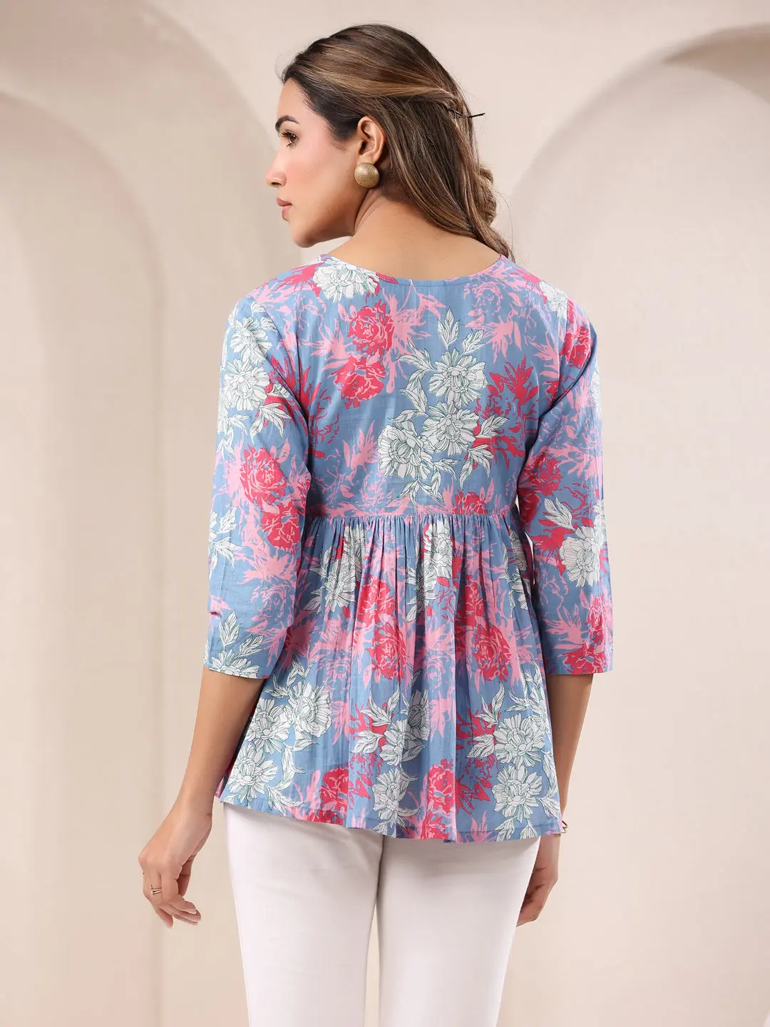 | Description | Top Color : Blue Top Fabric : Cotton Top Work : Floral Other Size Details : Top Length : 28 Inches Size : M, L, XL |