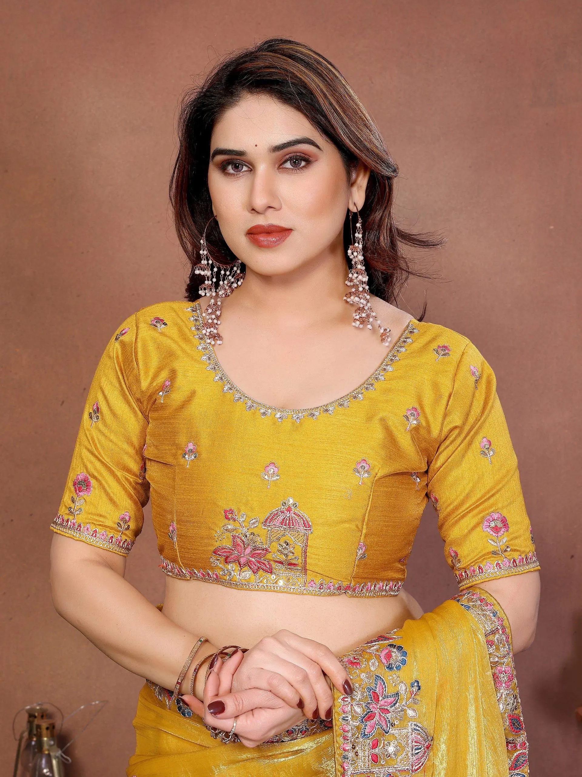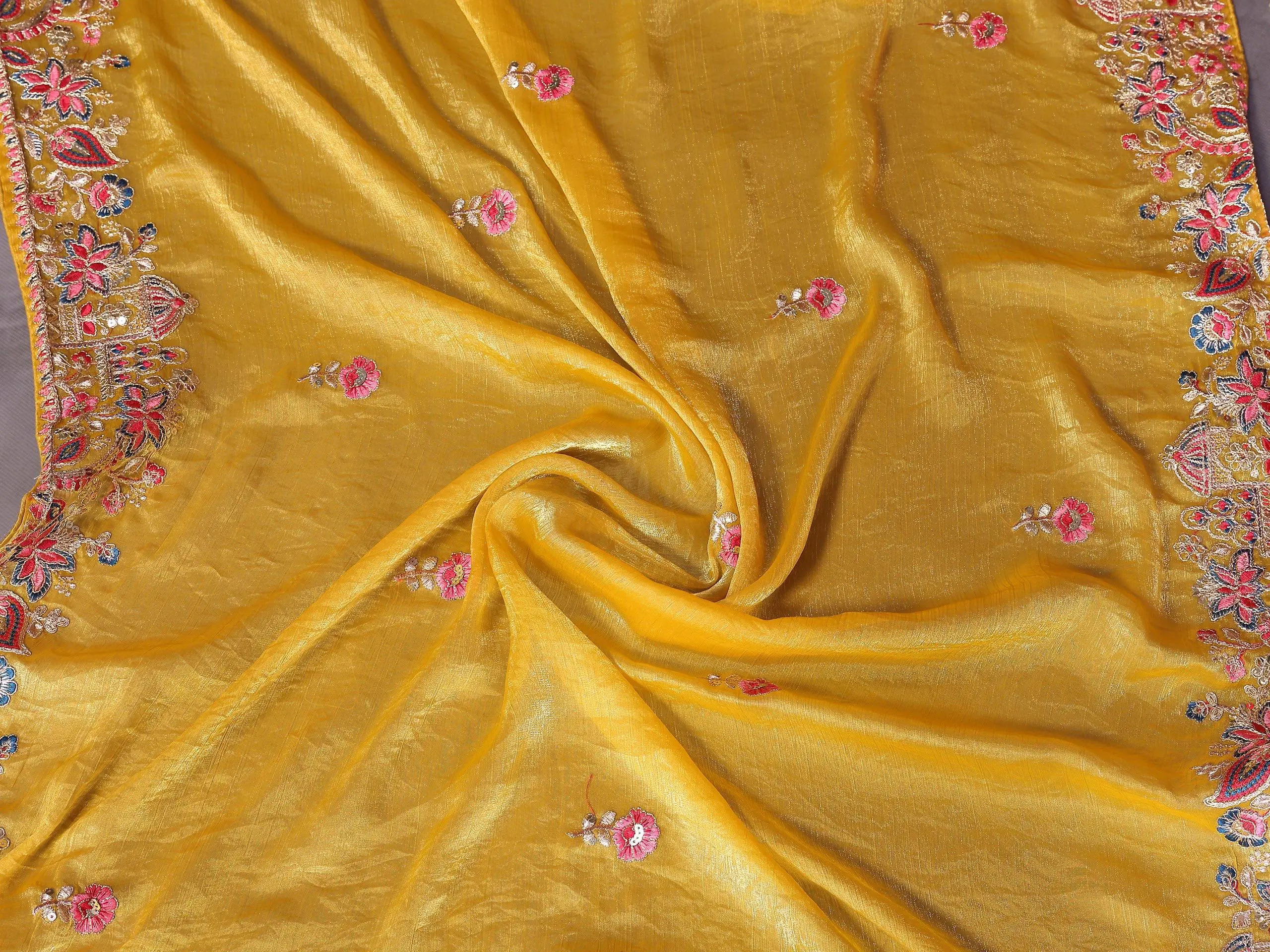 Product Name Kiara Gucci3 Party Wear Yellow Soft Fendy Chiffon Silk Saree